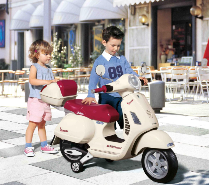 Children's scooter in the style of a Vespa GTS Super from the Italian brand manufacturer Peg-Pérego. The ultimate driving fun for all little scooter fans incl. 12V battery and 220/230V charger! Ideal for driving on smooth surfaces asphalt, cement, interlocking paving stones gradient up to 10%. All Peg Perego children's electric vehicles are equipped with a battery and charger for charging. All vehicles have a closed floor and are easy to assemble.