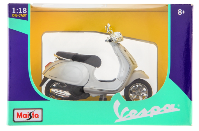 Timeless design, high recognition value, these two characteristics of the Vespa scooters have been immortalizedin an extremely successful way in this model series from Maisto . The unique miniature two-wheelers feature Vespa-typical steering, fine engine details and the characteristic upright seating position. And of course, all packed in a cardboard box with the original logo.