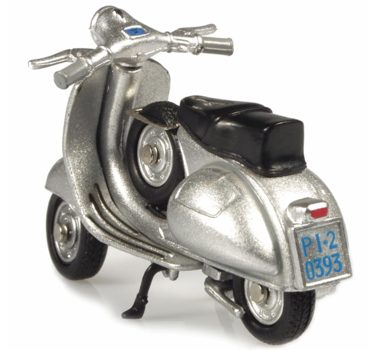 Timeless design, high recognition value, these two characteristics of the Vespa scooters have been immortalized in an extremely successful way in this model series from NewRay. The unique miniature two-wheelers feature Vespa-typical steering, fine engine details and the characteristic upright seating position. And of course, all packed in a box with the original logo.