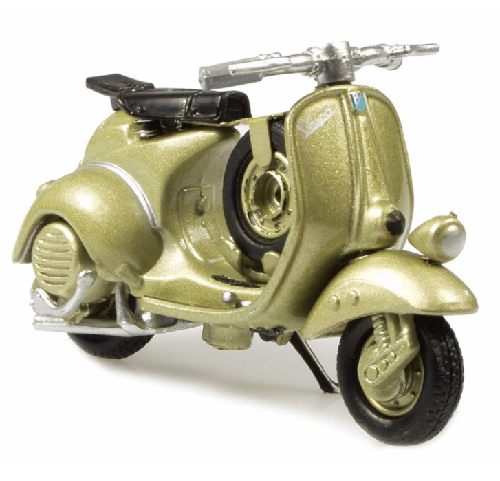 Timeless design, high recognition value, these two characteristics of the Vespa scooters have been immortalized in an extremely successful way in this model series from NewRay. The unique miniature two-wheelers feature Vespa-typical steering, fine engine details and the characteristic upright seating position. And of course, all packed in a cardboard box with the original logo.
