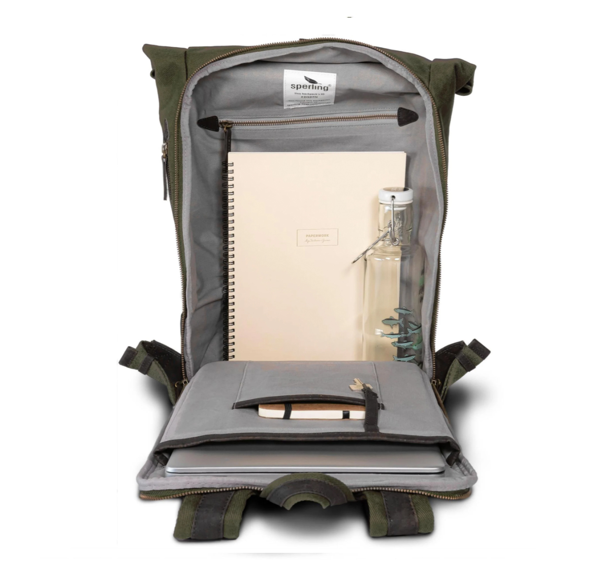 The new Sperling backpack for Vespa and scooter riders combines functionality and sustainability with its robust and water-repellent design. Made of organic cotton twill and vegan natural cork, it offers protection and style in any weather and situation. The Backpack features premium padding on the back, shoulder straps and bottom to ensure maximum comfort. An all-around padded laptop compartment provides secure storage for devices up to 15.6" or 26.5cm wide.