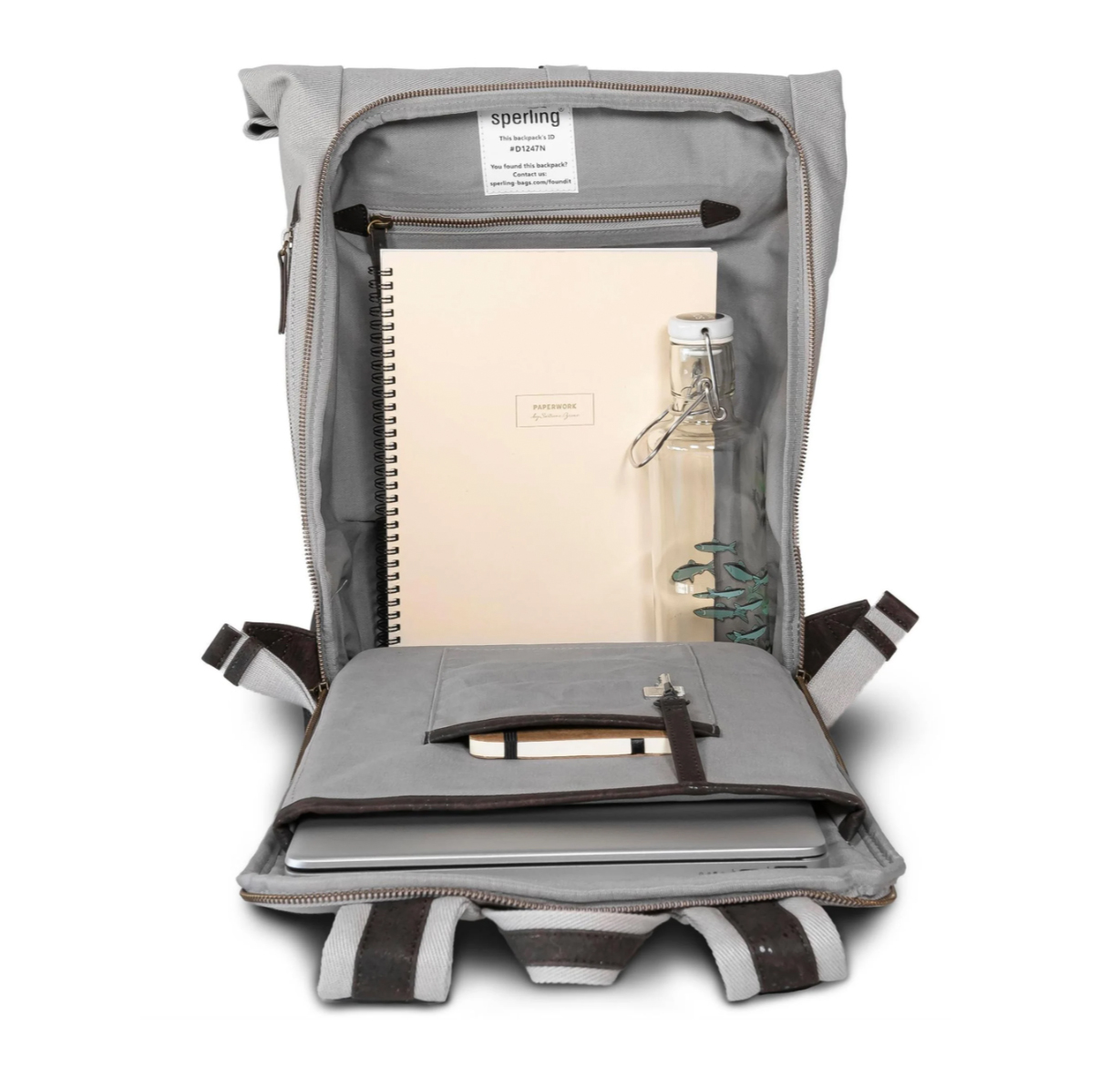 The new Sperling backpack for Vespa and scooter riders combines functionality and sustainability with its robust and water-repellent design. Made of organic cotton twill and vegan natural cork, it offers protection and style in any weather and situation. The Backpack features premium padding on the back, shoulder straps and bottom to ensure maximum comfort. An all-around padded laptop compartment provides secure storage for devices up to 15.6" or 26.5cm wide.