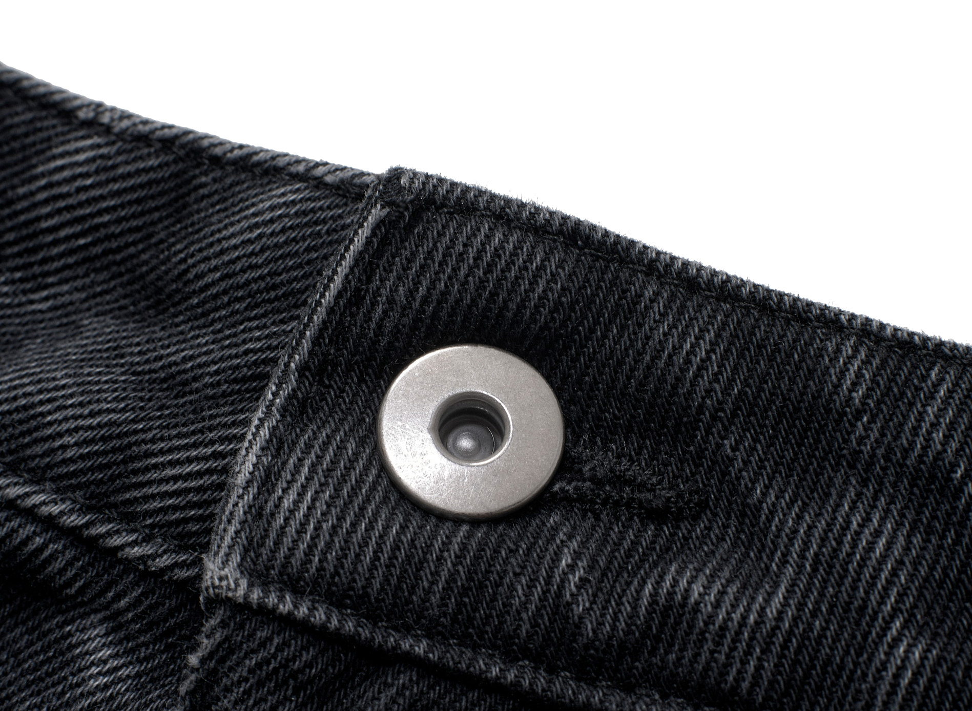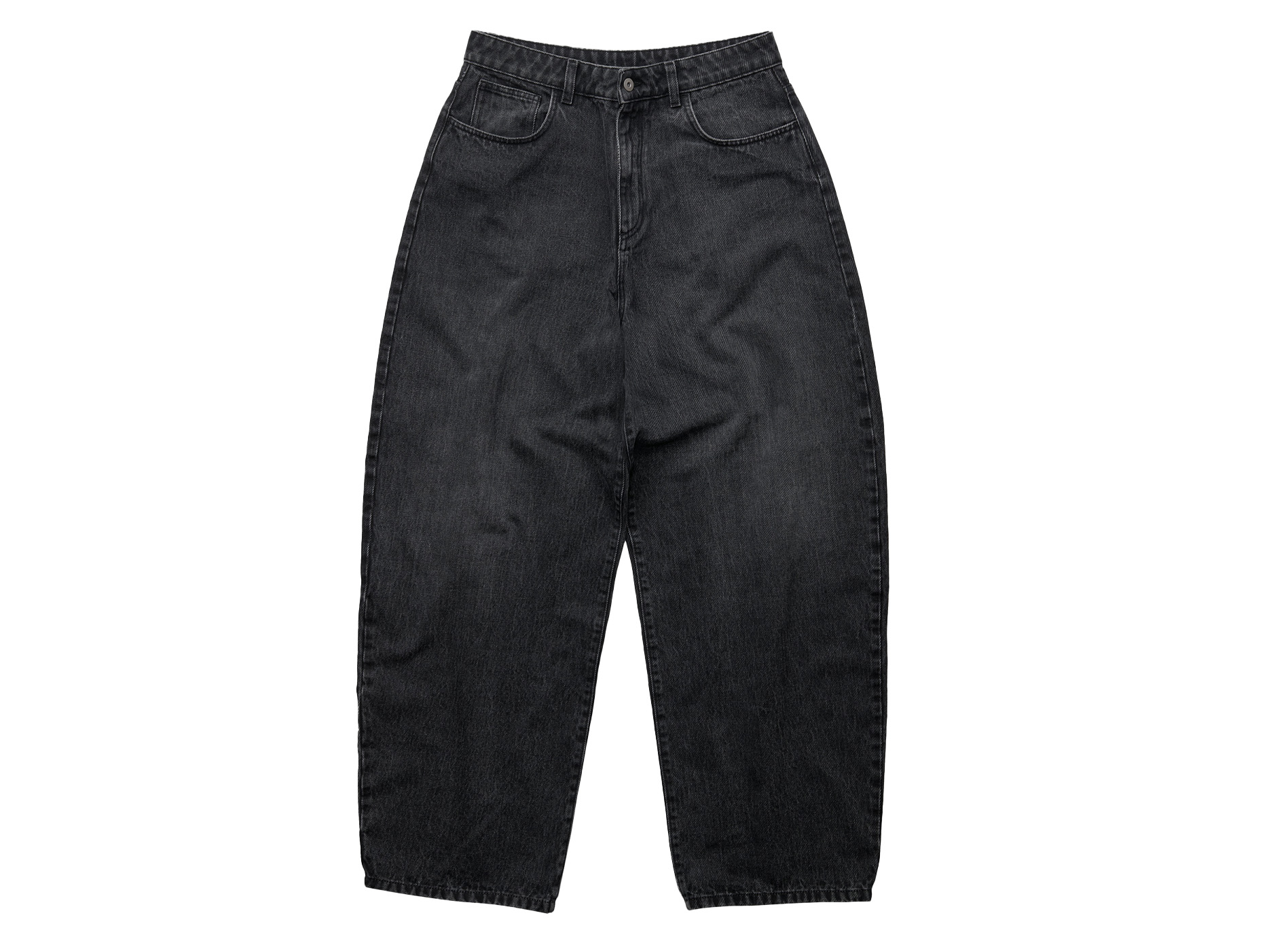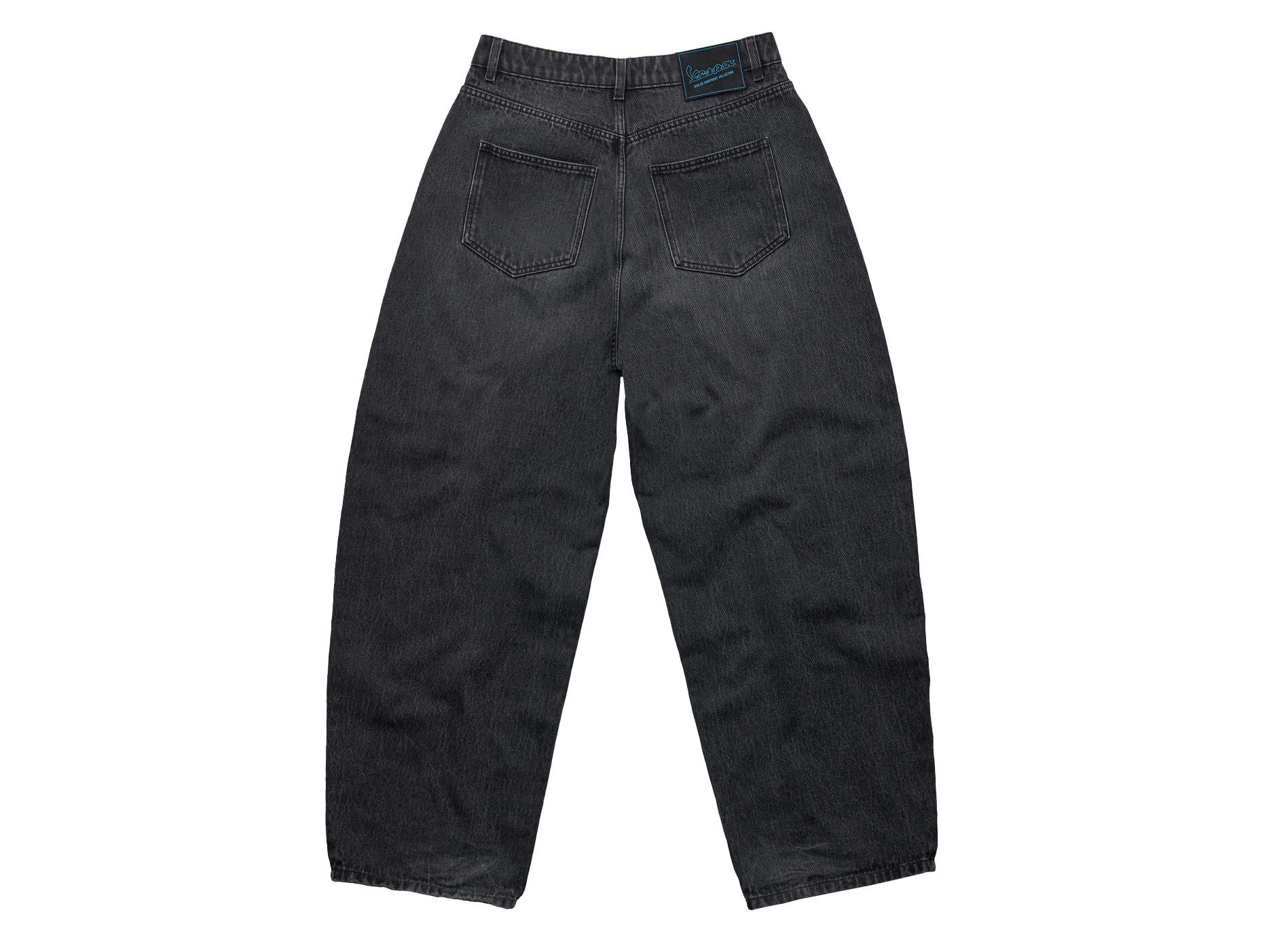 Oversize and unisex denim, low waist and wide leg. Origin and Nomad are overdyeings that give the garment seamless color transitions. Black is a vintage wash that creates slight shading on the garment. The embossed leather label with contrasting logo on the back is particularly striking.