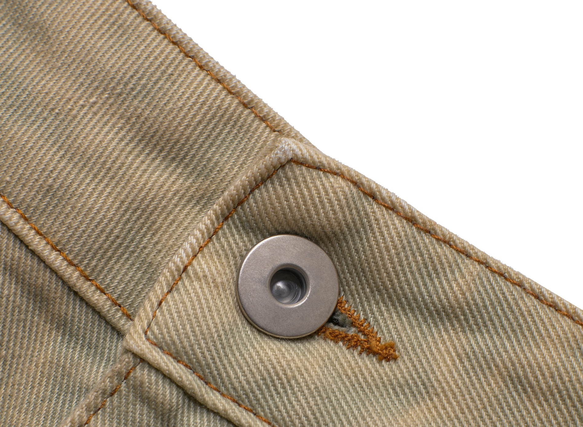 Oversize and unisex denim, low waist and wide leg. Origin and Nomad are overdyeings that give the garment seamless color transitions. Black is a vintage wash that creates slight shading on the garment. The embossed leather label with contrasting logo on the back is particularly striking.