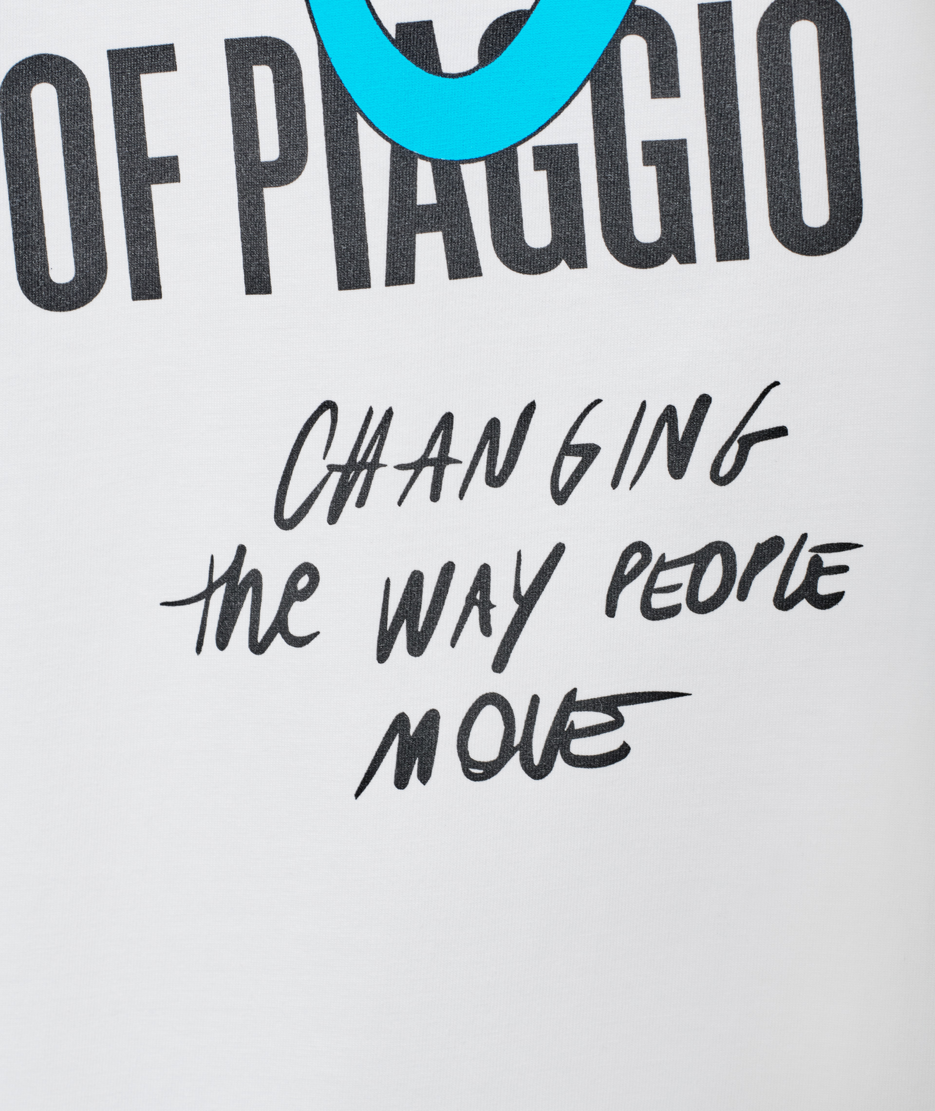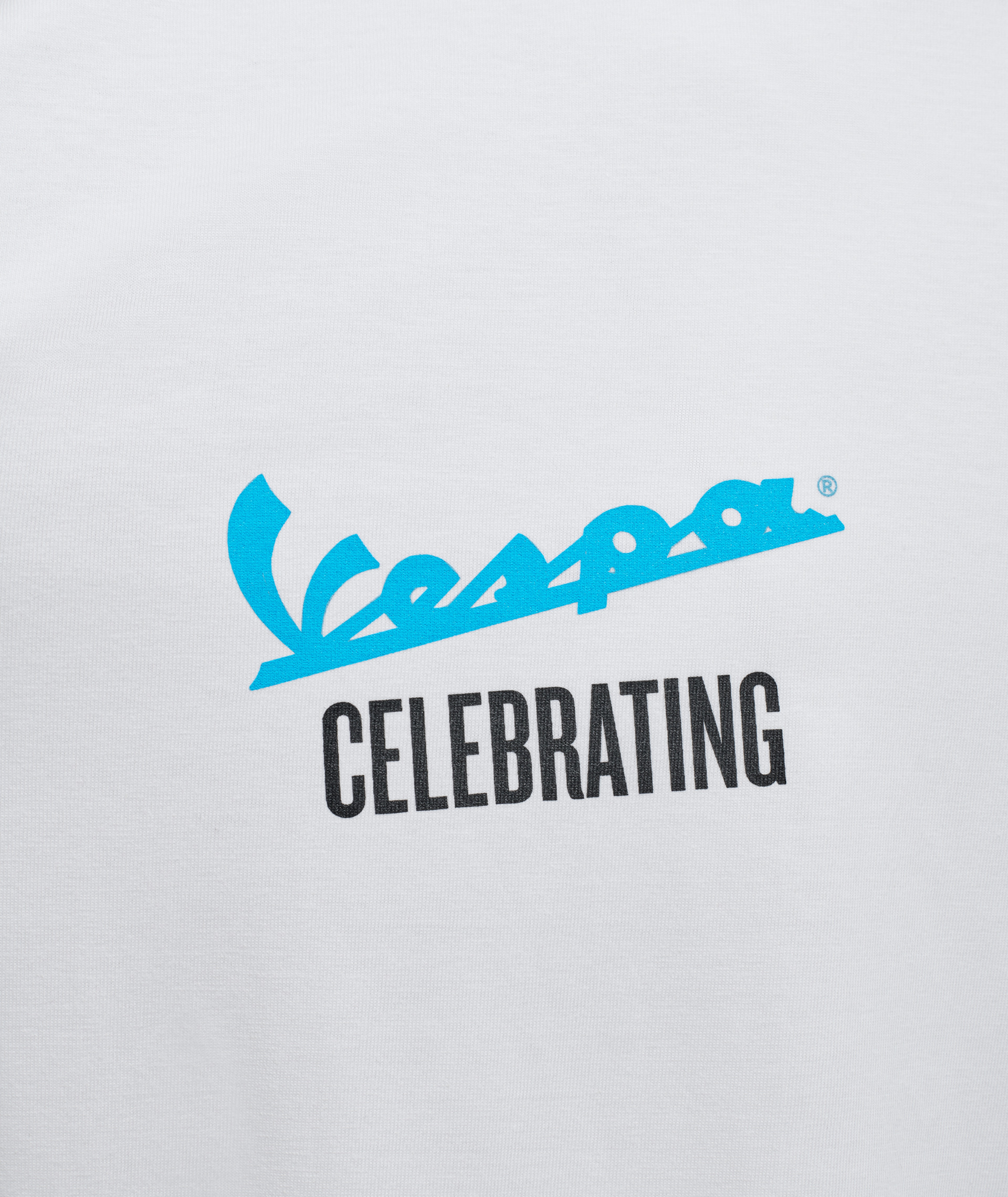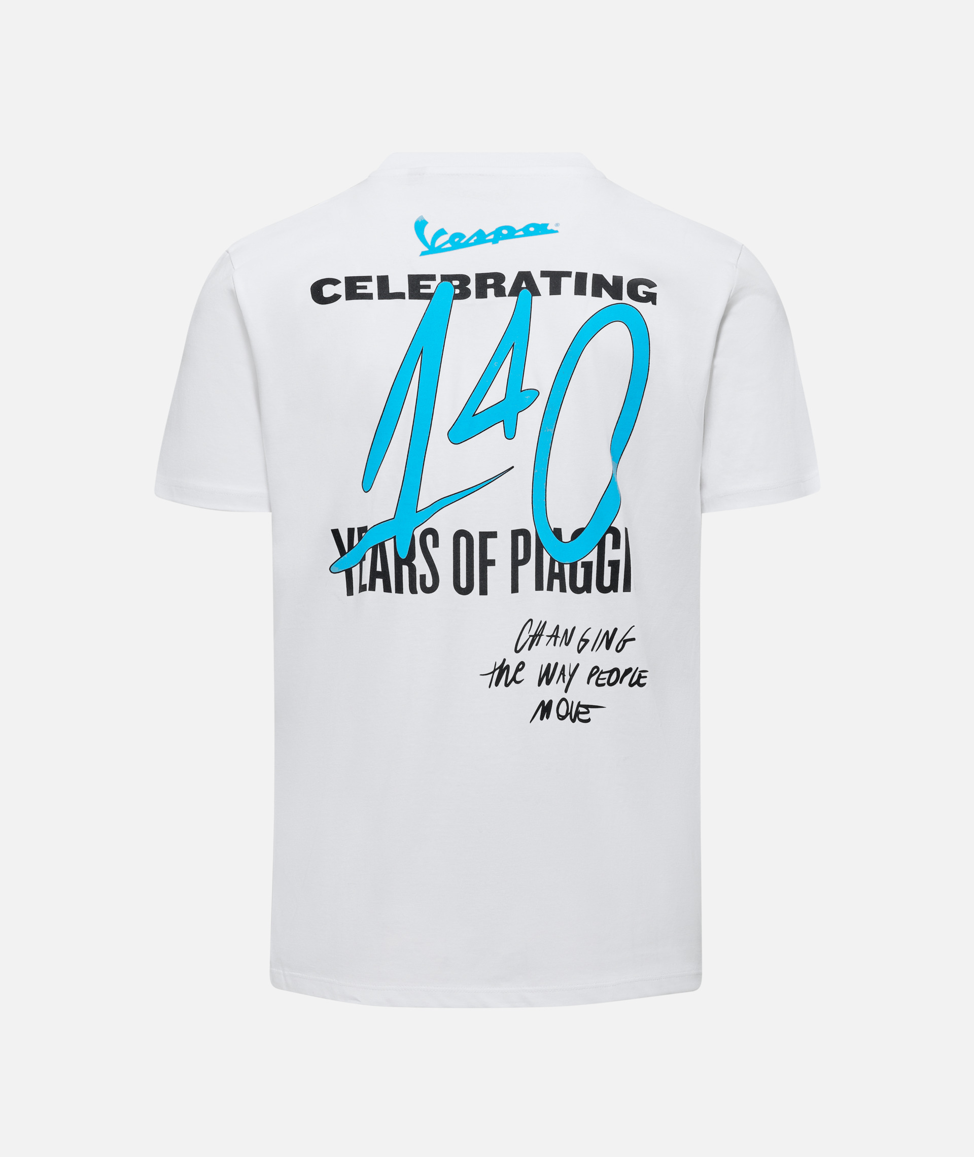 Comfortable T-shirt made from 100% cotton fabric. With the Piaggio 140th anniversary graphic and the Vespa logo on the front and back.