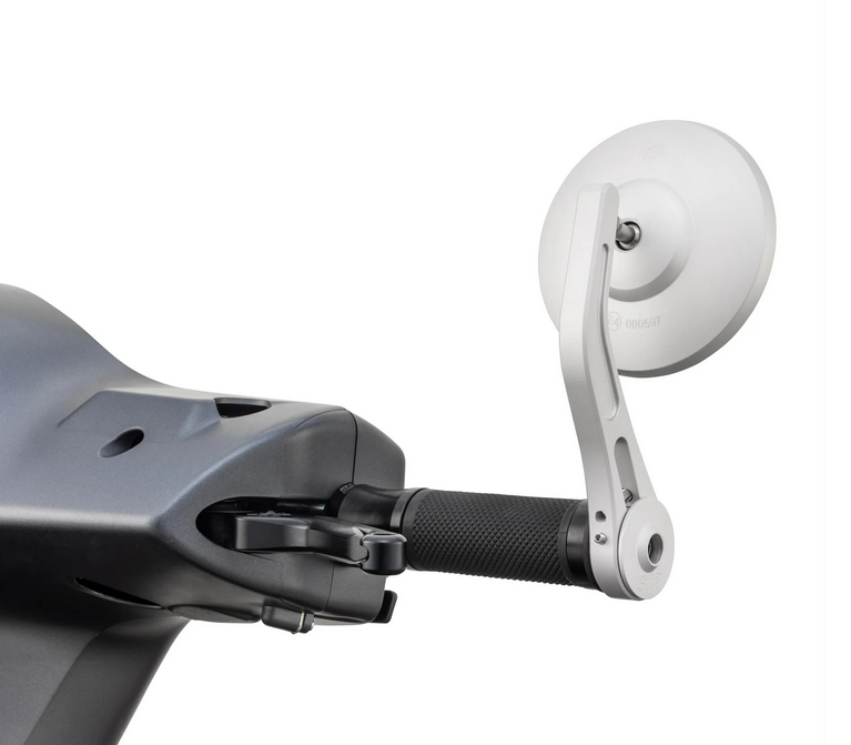 Handlebar end mirror for Vespa, left or right, round, silver matt