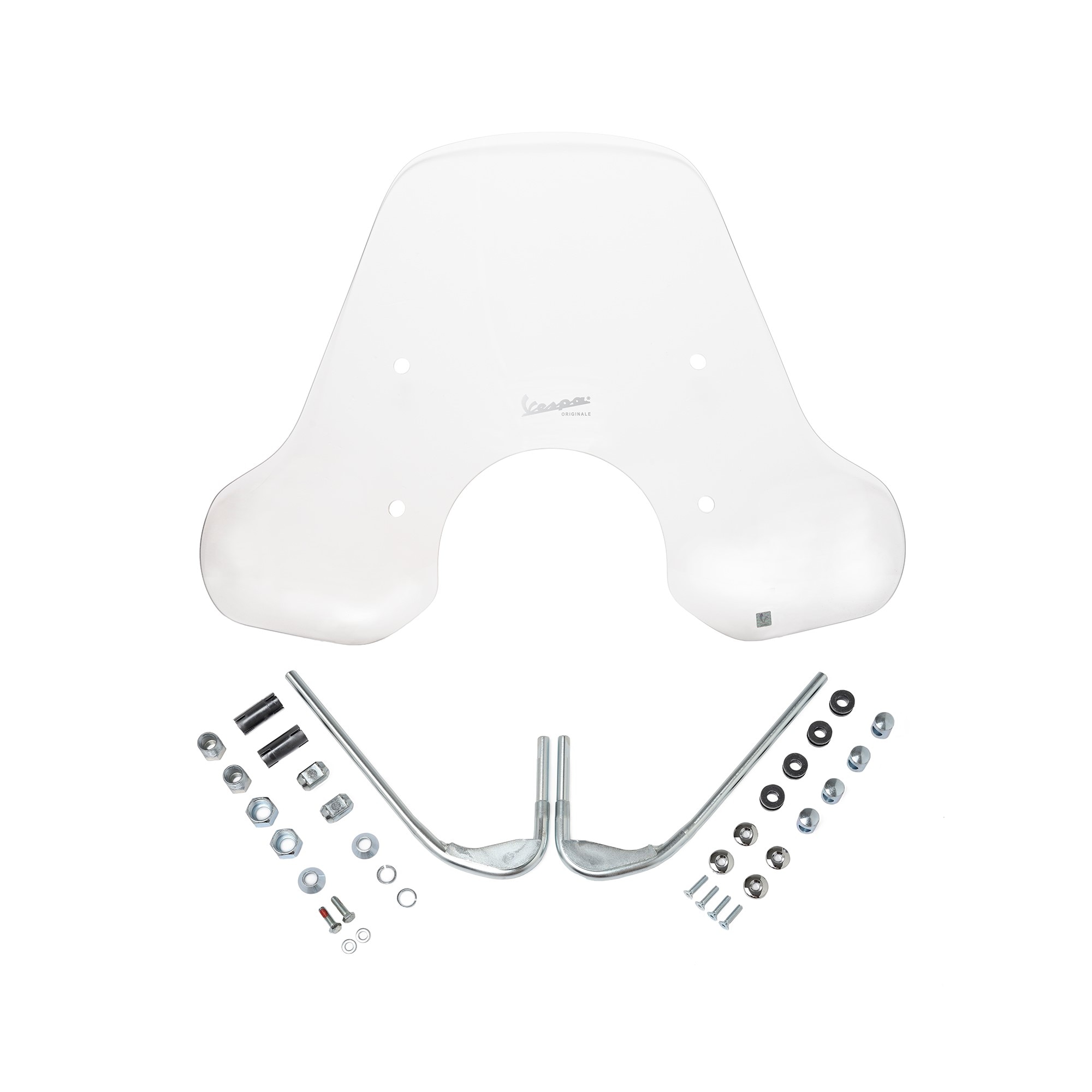 Windshield made of impact-resistant methacrylate. High-quality and robust production. The design of the brackets is matched to the Vespa. Guaranteed protection from wind and weather.