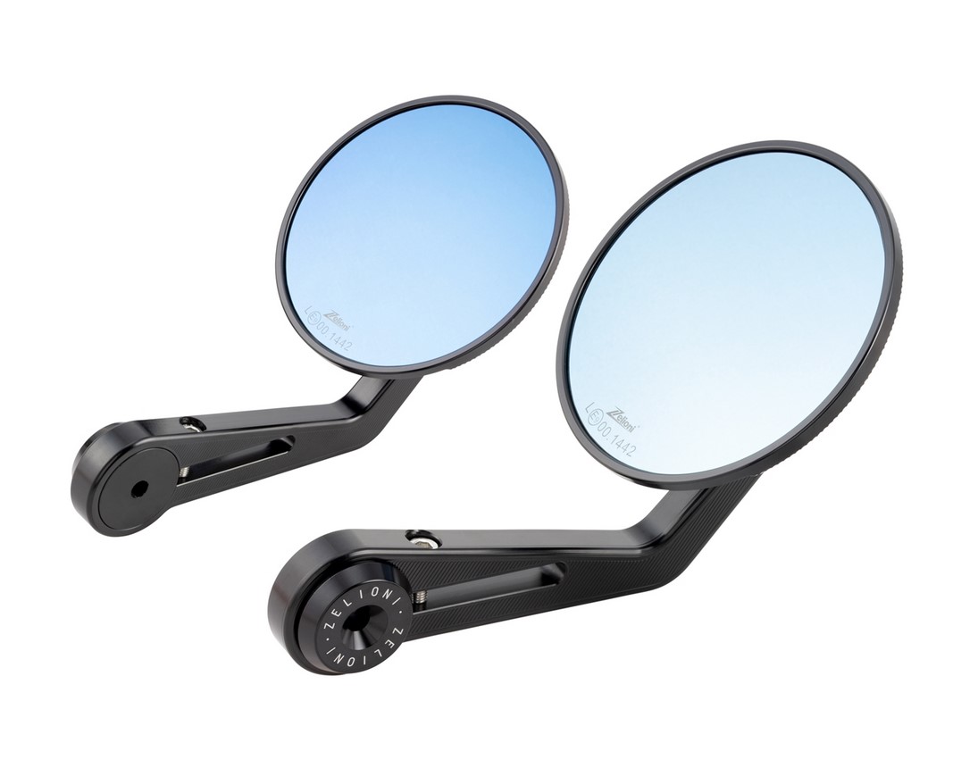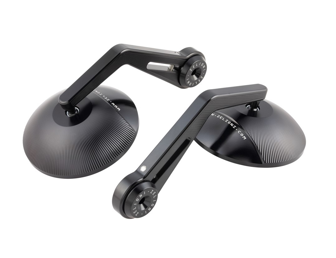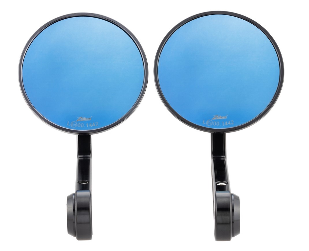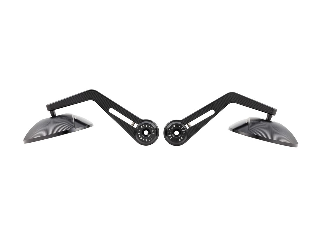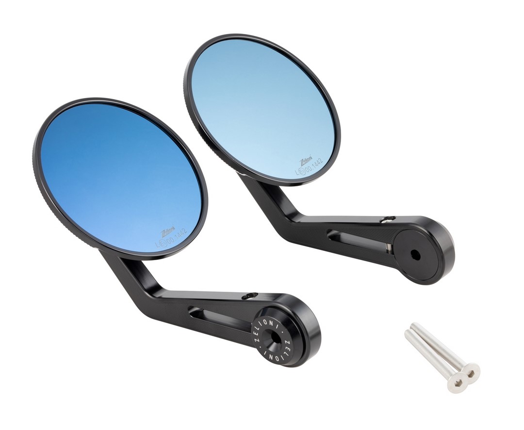Bar end mirror kit by ZELIONI. The kit contains 2 mirrors including mounting material for attachment to the handlebar end.