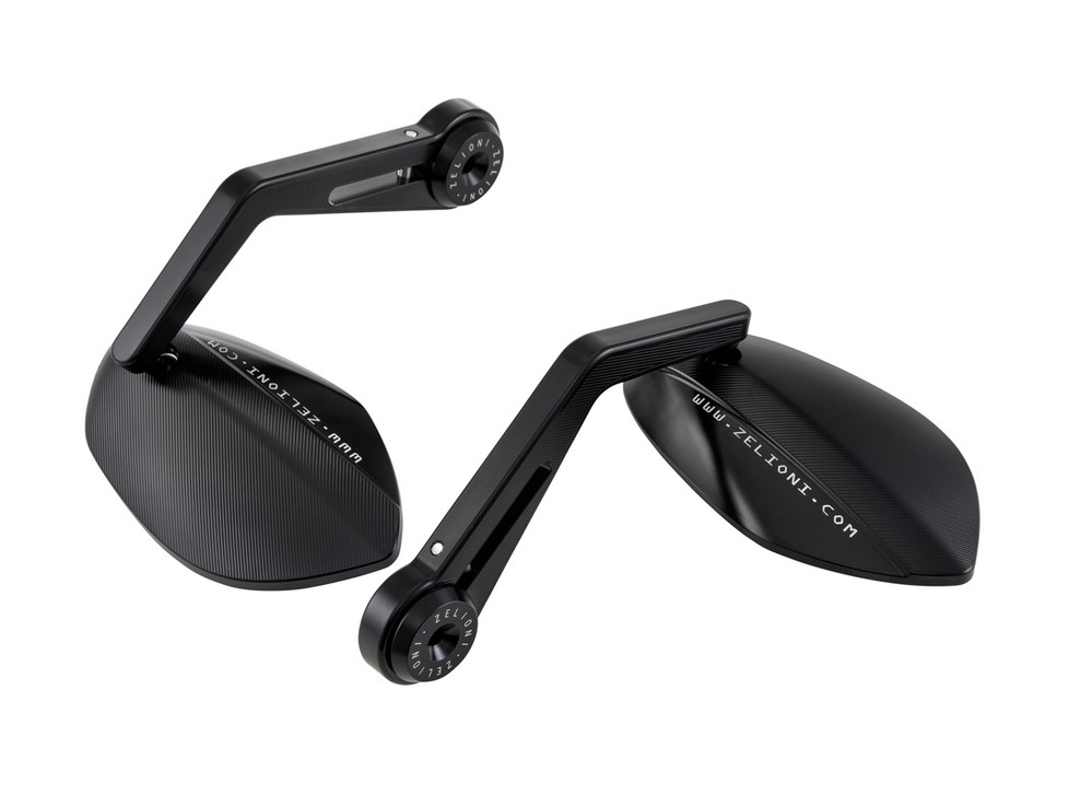 Bar end mirror kit by ZELIONI. The kit contains 2 mirrors including mounting material for attachment to the handlebar end.
