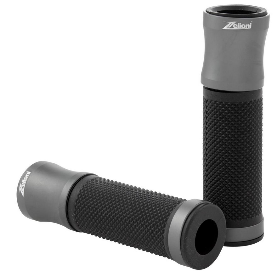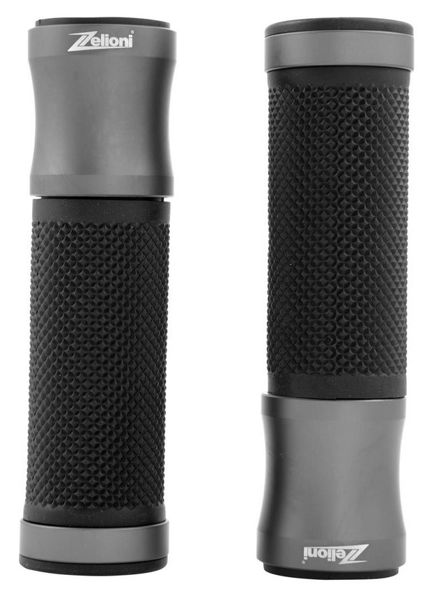Ergonomic grip with rubberized palm. Aluminum caps with laser-engraved ZELIONI logo. Ends open for mounting bar end weights/mirrors.