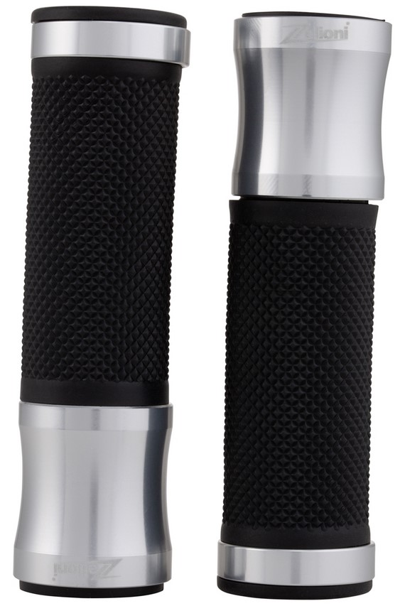 Ergonomic grip with rubberized palm. Aluminum caps with laser-engraved ZELIONI logo. Ends open for mounting bar end weights/mirrors.