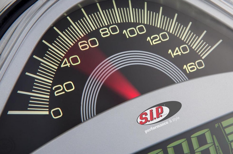 The SIP tachometer / tachometer replaces the standard, very sparsely equipped speedometer with a real multifunctional device. The speedometer impresses with its large analogue display for speed (up to 160 km/h) and engine speed (up to 16,000 rpm). The speedometer needle therefore shows either rpm or speed. A choice of 18 functions can be shown in the lower digital display. These can be switched at the push of a button. In addition to the standard functions such as analog / digital speed display, day & Total kilometers, temperature, the speedometer has an analogue & digital rev counter, digital fuel and temperature gauge, accelerometer for distance and speed measurement, average speed and many other features (see function list). The backlight can be selected from eight different colors. The brightness can also be regulated separately. Before each restart, the instrument performs a complete self-test. The speed decrease takes place as originally via the speed decrease integrated in the wiring harness or can be transmitted via a digital speed sensor. The appropriate sensors are available as accessories. A cable set for connection to the vehicle is included in the scope of delivery. This is connected between the speedometer and the wiring harness. Everything without soldering, simple and uncomplicated.