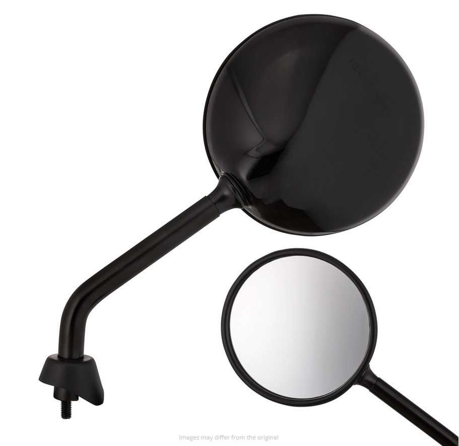The Shorty mirrors are kept in the original shape of the Vespa mirrors, but have a much shorter mirror arm. With approx. 5-6cm less lever length, it fits perfectly into the overall picture of the Vespa. The mirror head can be adjusted using the ball joint, the field of vision is not impaired despite the shorter lever. The mirror has an E number and can be driven on the road without any problems. The delivery includes rubber caps and lock nuts.