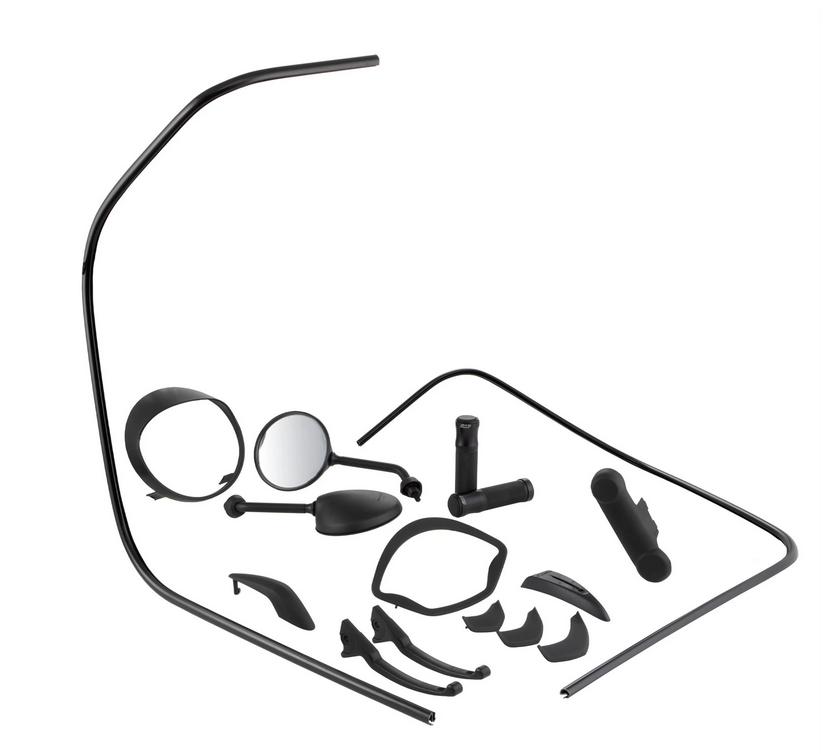 "Back to Black" with the SIP Styling Kits for the GTS. The all-round carefree package includes almost all parts to get rid of the annoying chrome parts of the Vespa GTS. The SIP styling kit in matte black for the Vespa GTS HPE includes the distinctive mono slot tube as well as matching mirrors, grips, levers, our SIP lamp ring, speedometer ring, cascade inserts, the two-piece fender nipple from the old GTS models and the matching swingarm cover.
