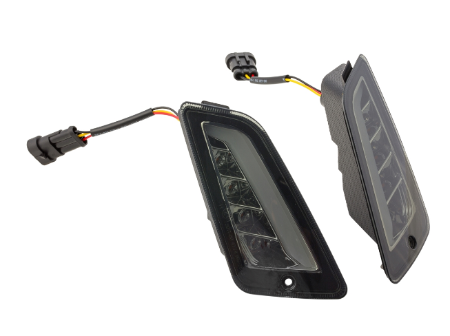 SIP LED indicator kits with integrated LED position lights and E -Approval, with tinted or clear indicator lenses. The LED lights make it much easier to be seen in traffic, even during the day. Position lights emit white light at the front and red light at the rear, the turn signal function remains orange. If the flashing process is carried out on the vehicle, the turn signals or position lights light up alternately on the respective side. High quality and optimal fit. The turn signal kits can be installed plug & play without further modifications. Due to the resistors soldered in, no special LED relay is required.