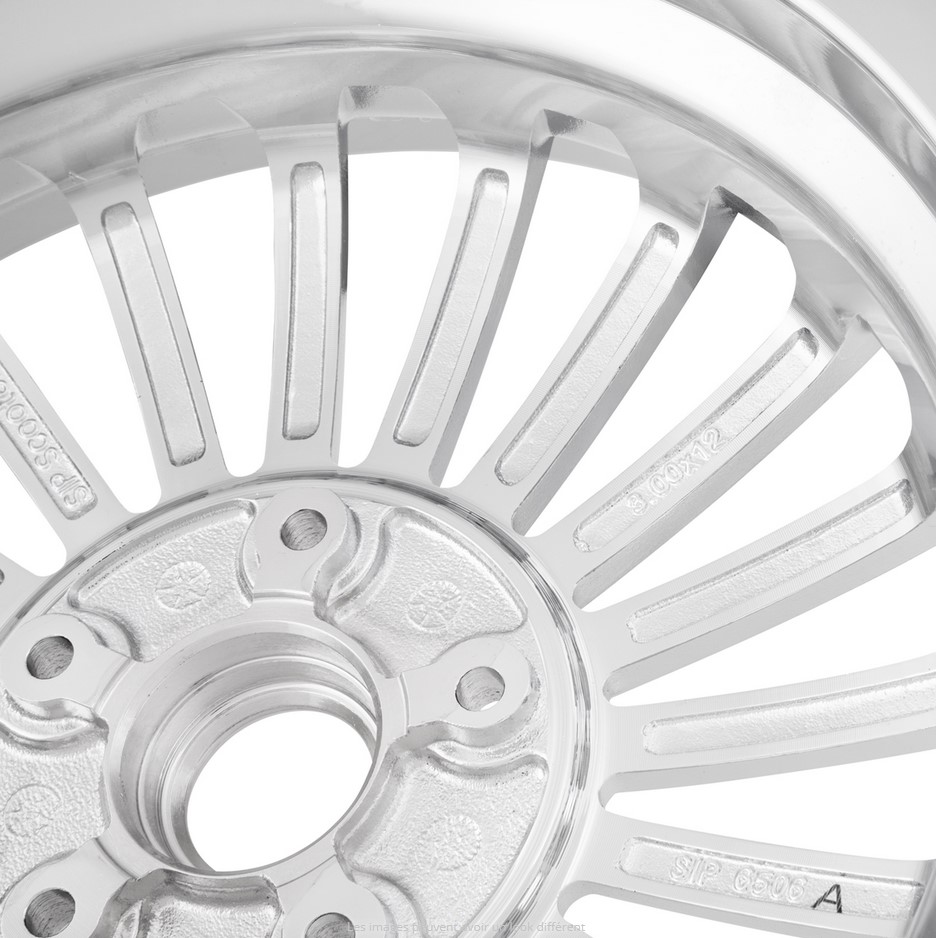 The SIP Performance rims for modern Vespa models come in the usual high quality, with both processing and fitting accuracy. Product with perfect surface finish, 20 spokes, CNC machined surface and molded SIP logo. They are manufactured in accordance with the ETRTO (European Tire and Rim Technical Organization) guidelines, the industry specifications for rim and tire production, and have the KBA type mark. Can therefore be used legally in German traffic.