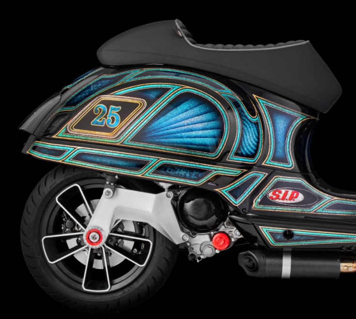 Solid CNC milled swing arm for Vespa GTS - Use for the SIP underbody exhaust, incl. holder for ABS sensor (suitable for models with ABS on the rear wheel)