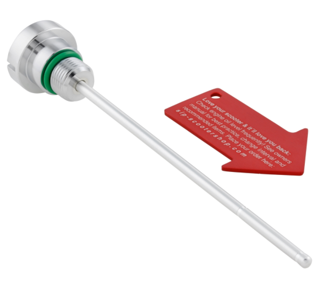 The oil filler plug / dipstick SIP PORDOI for the engine oil is off high-quality aluminum CNC milled. Due to the simple design, the oil filler plugs look beautiful on every vehicle and fit well into the overall picture of the Vespa. The scale on the dipstick is aligned with the original filler plugs, the matching sealing ring is already attached. The standard filler plugs are often stolen from parked vehicles. In order to make work more difficult for unauthorized persons, SIP has thought of a small security plus and supplies a special assembly tool with the filler screws which can also be used as a key fob.