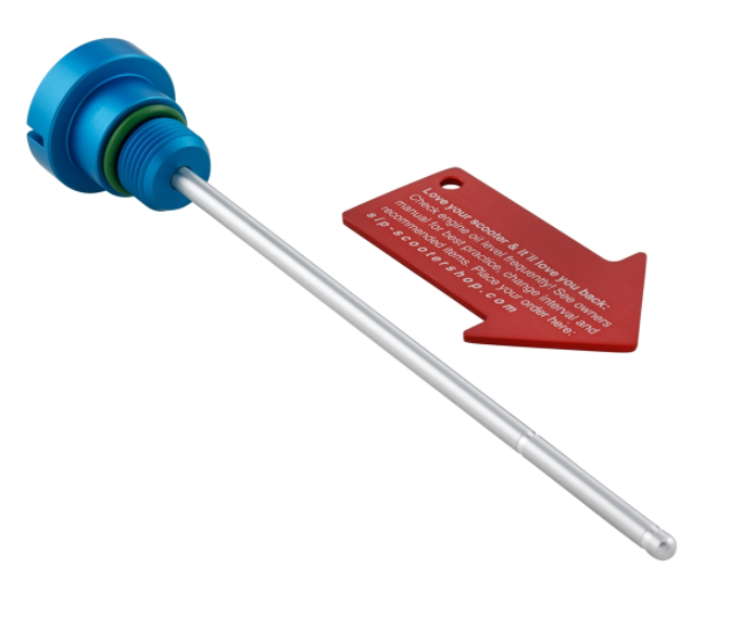 The oil filler plug / dipstick SIP PORDOI for the engine oil is off high-quality aluminum CNC milled. Due to the simple design, the oil filler plugs look beautiful on every vehicle and fit well into the overall picture of the Vespa. The scale on the dipstick is aligned with the original filler plugs, the matching sealing ring is already attached. The standard filler plugs are often stolen from parked vehicles. In order to make work more difficult for unauthorized persons, SIP has thought of a small security plus and supplies a special assembly tool with the filler screws which can also be used as a key fob.