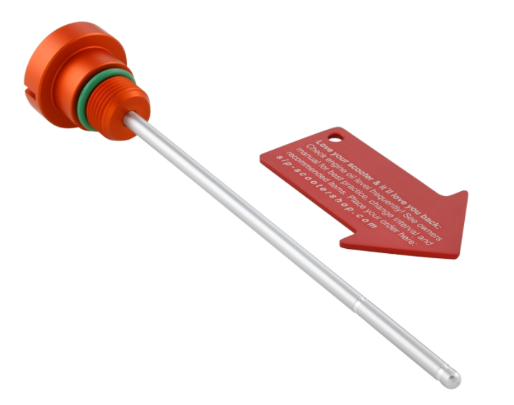 The oil filler plug / dipstick SIP PORDOI for the engine oil is off high-quality aluminum CNC milled. Due to the simple design, the oil filler plugs look beautiful on every vehicle and fit well into the overall picture of the Vespa. The scale on the dipstick is aligned with the original filler plugs, the matching sealing ring is already attached. The standard filler plugs are often stolen from parked vehicles. In order to make work more difficult for unauthorized persons, SIP has thought of a small security plus and supplies a special assembly tool with the filler screws which can also be used as a key fob.