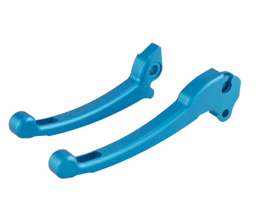 The CNC-machined sports levers are ideal for sporty ambitious drivers not only because of the look. The length of the levers is such that they are, even when using a hydraulic brake cylinder, the same width on both sides. At their end, the levers are provided with a predetermined breaking point. This is to prevent breakage in the event of a fall. This allows the scooter to be operated even after a minor accident. Color-matched brake or clutch lever is available separately. For models with fully hydraulic disc brake, please check master brake cylinder before ordering (HENGTONG or GRIMECA). Supplied in pieces.