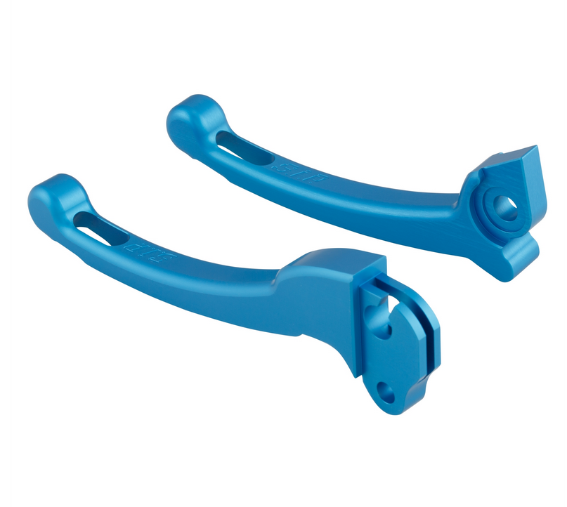 The CNC-machined sports levers are ideal for sporty ambitious drivers not only because of the look. The length of the levers is such that they are, even when using a hydraulic brake cylinder, the same width on both sides. At their end, the levers are provided with a predetermined breaking point. This is to prevent breakage in the event of a fall. This allows the scooter to be operated even after a minor accident. Color-matched brake or clutch lever is available separately. For models with fully hydraulic disc brake, please check master brake cylinder before ordering (HENGTONG or GRIMECA). Supplied in pieces.