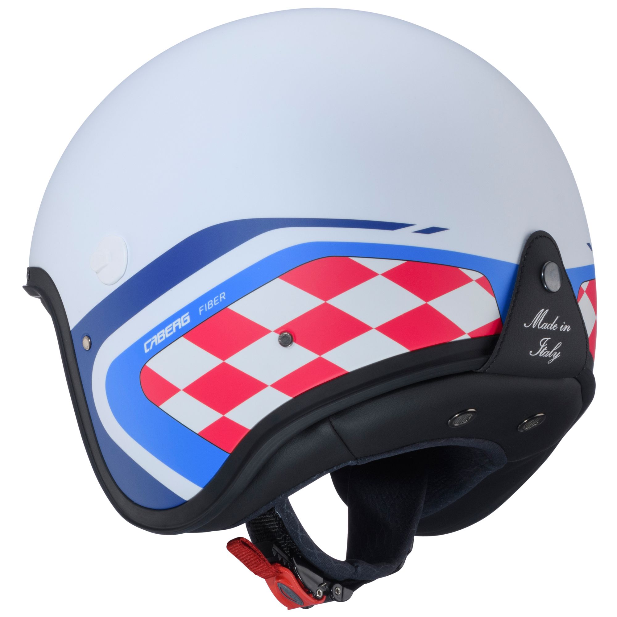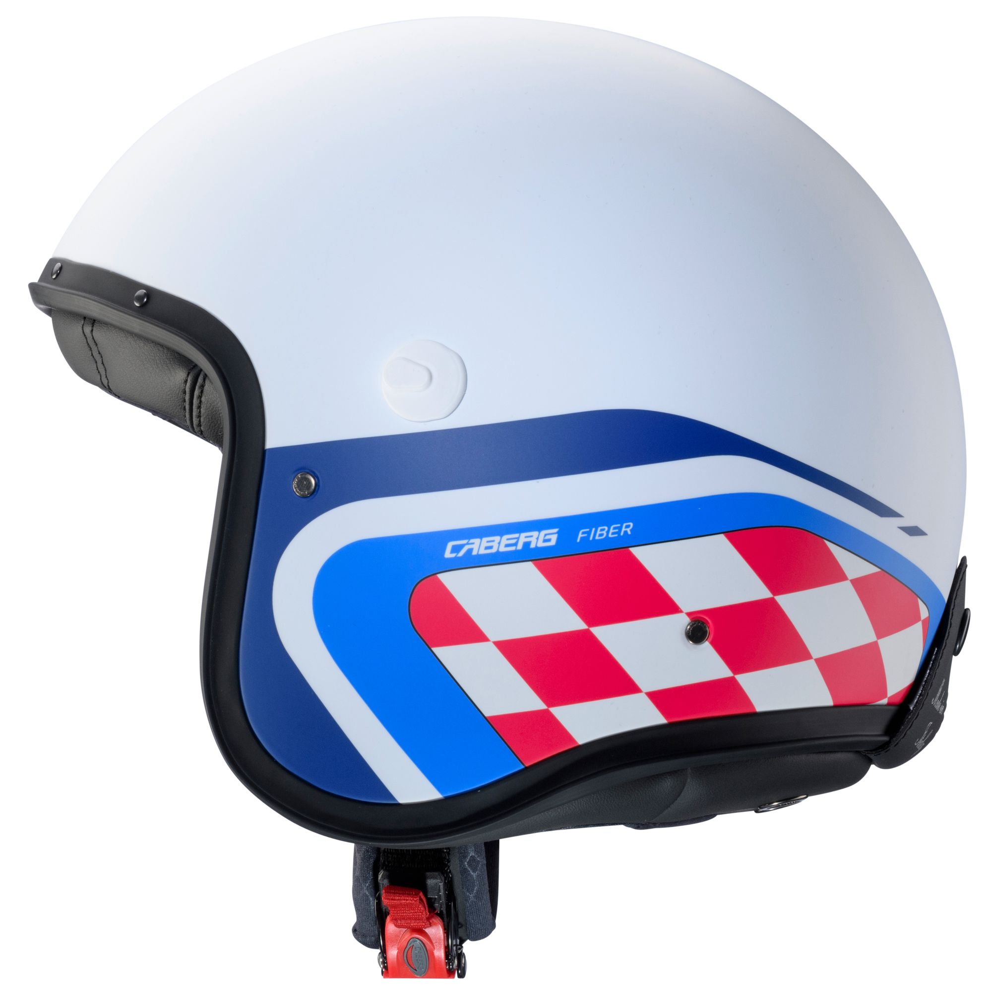 The Caberg Freeride X jet helmet with Daytona decor in the colors matt white/blue-red has the following features: