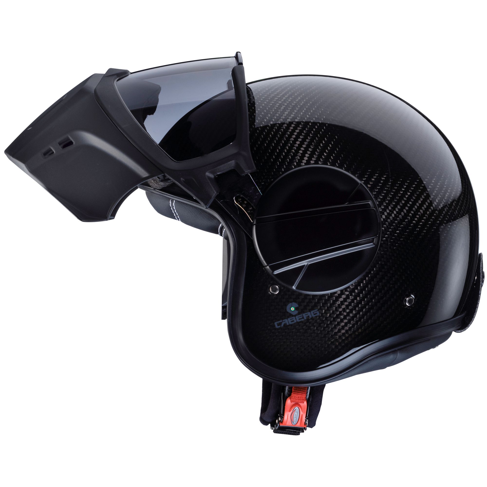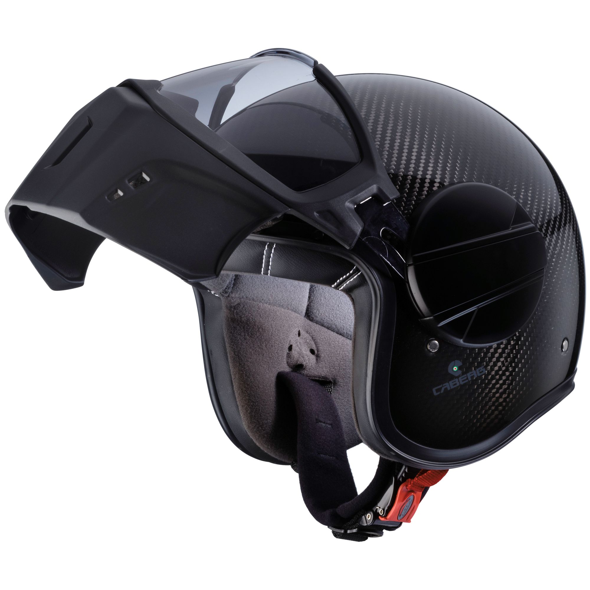 The Caberg Ghost X jet helmet is the perfect companion for anyone looking for style, comfort and functionality at the highest level. This extraordinary helmet can be flexibly converted into four versions so that you can always enjoy exactly the riding experience you want. The flip-up mask in the front area can be easily locked in place or removed completely, while the scratch-resistant and anti-fog visor with foam profiles ensures clear vision and optimum protection. Experience maximum comfort with the double anti-turbulence neck protection, a removable nose spoiler and a removable, washable interior finished with the hygienic Sanitized® treatment. The integrated goggle loop at the back of the head ensures that spectacle wearers can enjoy the fun of riding without compromise. With its high-quality multi-layer coating and UV protection, the Ghost X not only impresses technically, but also visually. Three perfectly coordinated shell sizes (XS-S, M-L, XL-2XL) guarantee a perfect fit, while the prepared speaker cut-outs for common Bluetooth systems from Sena and the homologation for the Caberg Pro Speak Evo Bluetooth communication system make every ride smarter. The practical Micro-Metric helmet closure and ECE standard 22.06 certification offer maximum safety. The Caberg Ghost X - a helmet that not only protects, but also inspires.
