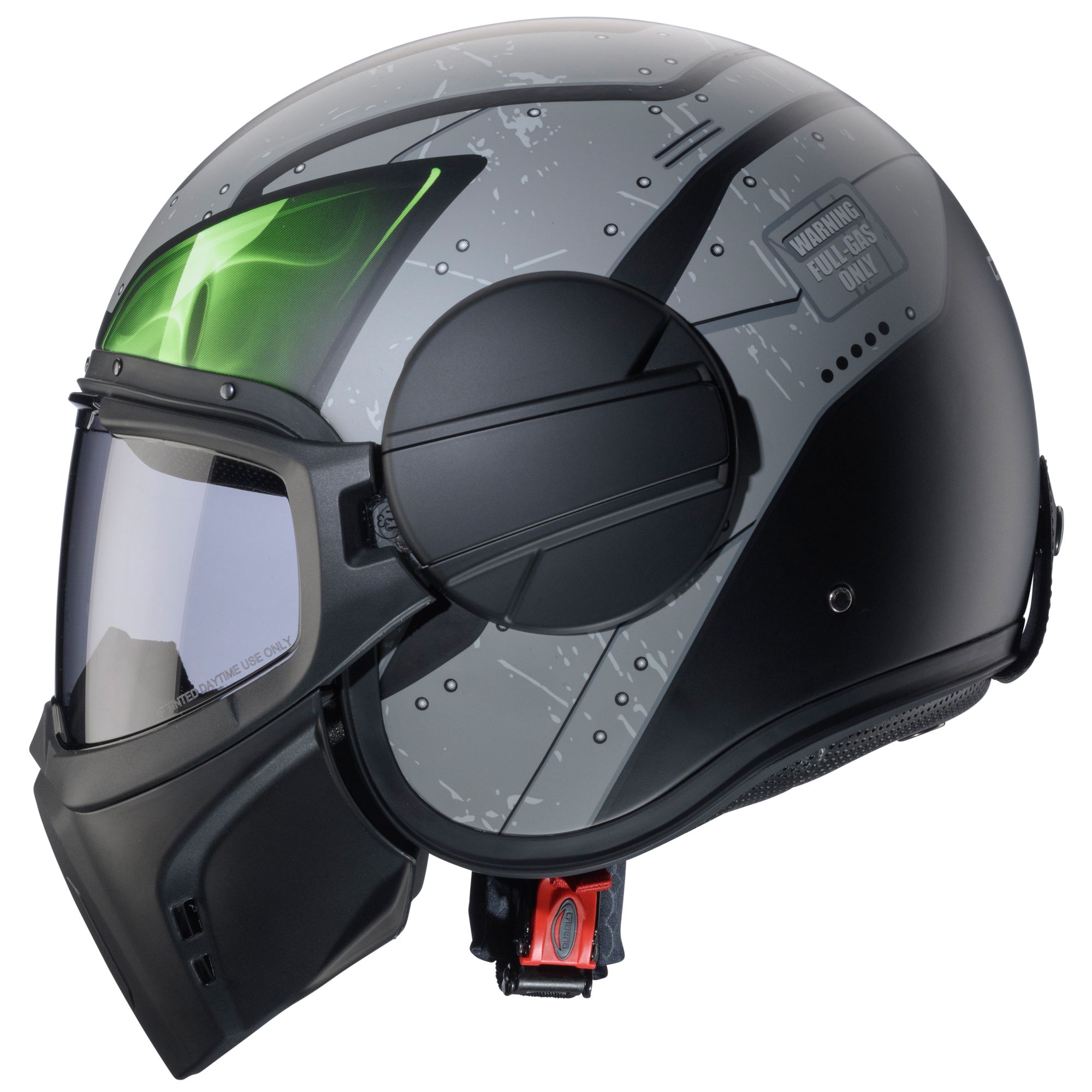 The Caberg Ghost X jet helmet is the perfect companion for anyone looking for style, comfort and functionality at the highest level. This extraordinary helmet can be flexibly converted into four versions so that you can always enjoy exactly the riding experience you want. The flip-up mask in the front area can be easily locked in place or removed completely, while the scratch-resistant and anti-fog visor with foam profiles ensures clear vision and optimum protection. Experience maximum comfort with the double anti-turbulence neck protection, a removable nose spoiler and a removable, washable interior that is finished with the hygienic Sanitized® treatment. The integrated goggle loop at the back of the head ensures that spectacle wearers can enjoy the fun of riding without compromise. With its high-quality multi-layer coating and UV protection, the Ghost X not only impresses technically, but also visually. Three perfectly coordinated shell sizes (XS-S, M-L, XL-2XL) guarantee a perfect fit, while the prepared speaker cut-outs for common Bluetooth systems from Sena and the homologation for the Caberg Pro Speak Evo Bluetooth communication system make every ride smarter. The practical Micro-Metric helmet closure and ECE standard 22.06 certification offer maximum safety. The Caberg Ghost X - a helmet that not only protects, but also inspires.