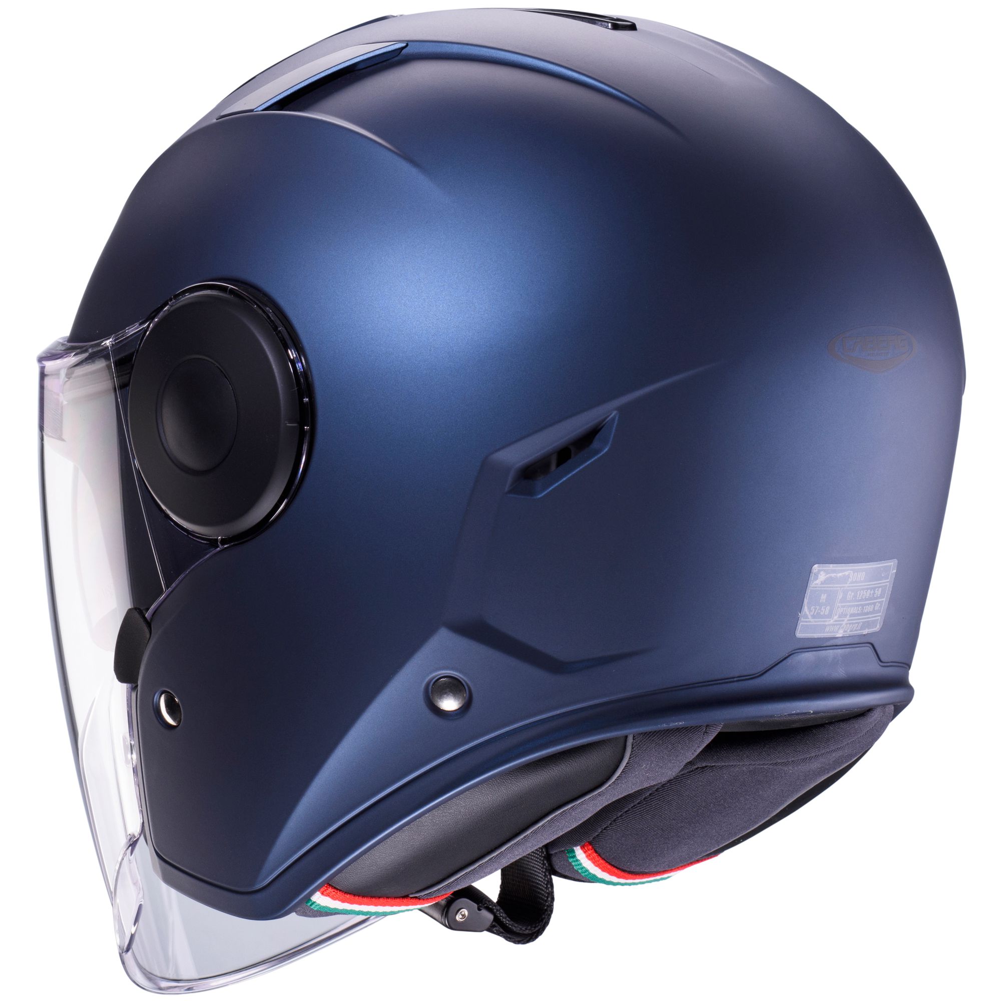 The Caberg Soho jet helmet combines modern design, high comfort and innovative safety technologies that make every ride a stylish experience. Made from robust thermoplastic (ABS) and equipped with a scratch-resistant visor and integrated sun visor, it offers optimum protection and flexibility in different weather and light conditions. A ventilation system with head ventilation and air outlet at the back of the head ensures a pleasantly fresh feel, while the anti-rain profile offers additional protection against moisture. The double anti-turbulence neck guard stabilizes the helmet even at higher speeds. The removable, washable interior and the ergonomically shaped cheek pads, which make it easier to wear goggles, ensure maximum comfort and hygiene. A high-quality multi-layer coating with UV protection preserves the elegant look of the helmet and protects it from the elements. The Caberg Soho is available in two shell sizes: one smaller (XS-M) and one larger (L-XL), allowing it to adapt perfectly to any head shape. For modern Bluetooth systems from Sena, the helmet offers speaker cut-outs and is homologated for the Caberg Pro Speak Evo Bluetooth communication system, which enables seamless connections to smartphones and other devices. The practical Micro-Metric helmet closure ensures safe and easy handling. Weighing just 1,300 g (+/- 50 g) and meeting the strict ECE 22.06 standard, this helmet sets the benchmark in style, comfort and safety.